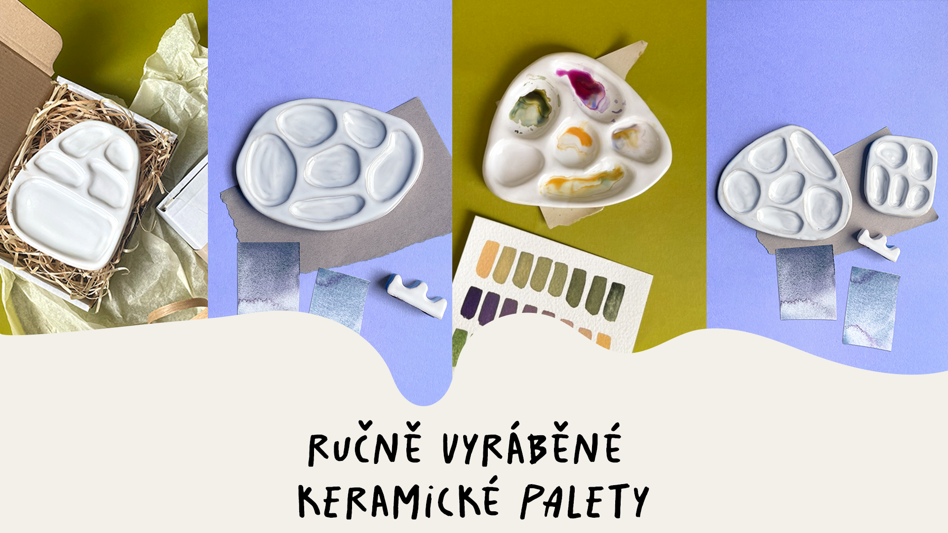 Speciální edice *OLIVE* - Sada středních keramických palet + stojánek na štětce